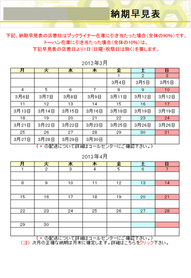 書店様到着予定日に「*」が入っている場合は、宅配便での出荷を予定している日です。(年末年始・GW・お盆など)